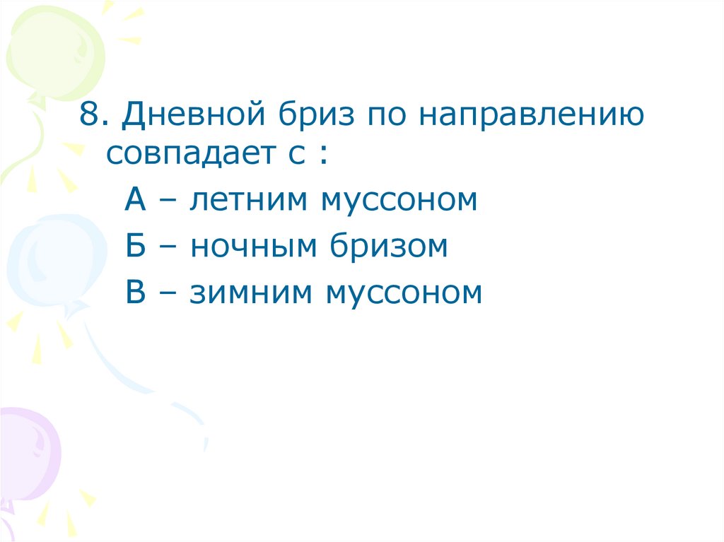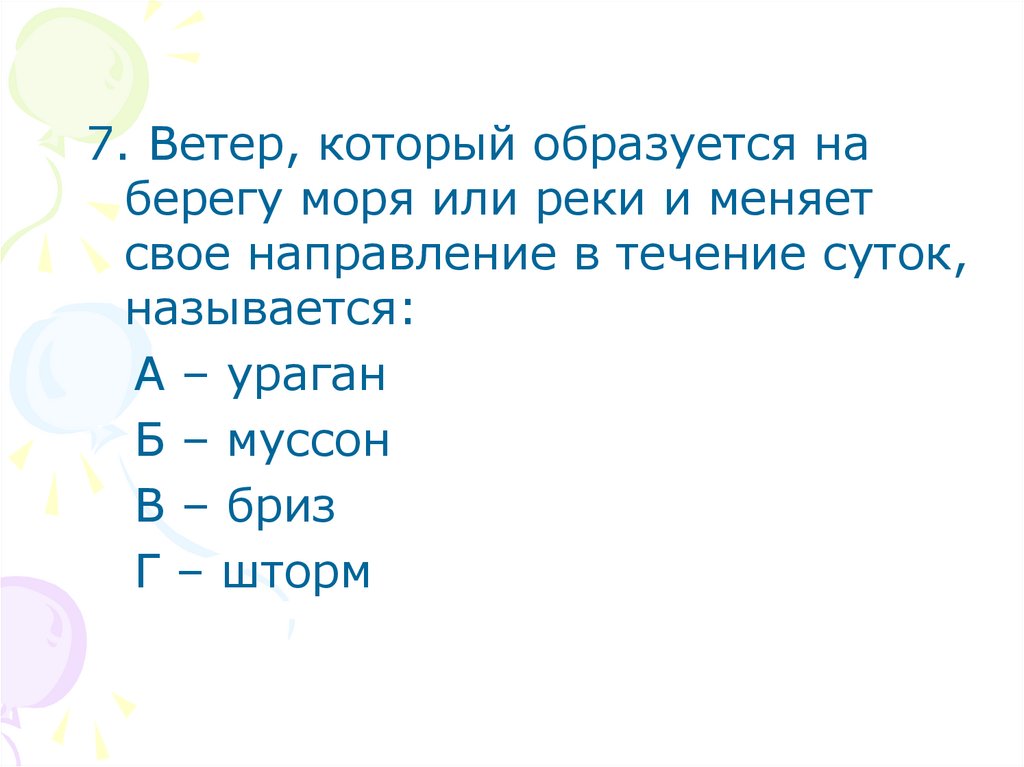 7. Ветер, который образуется наберегу моря или реки и меняет
