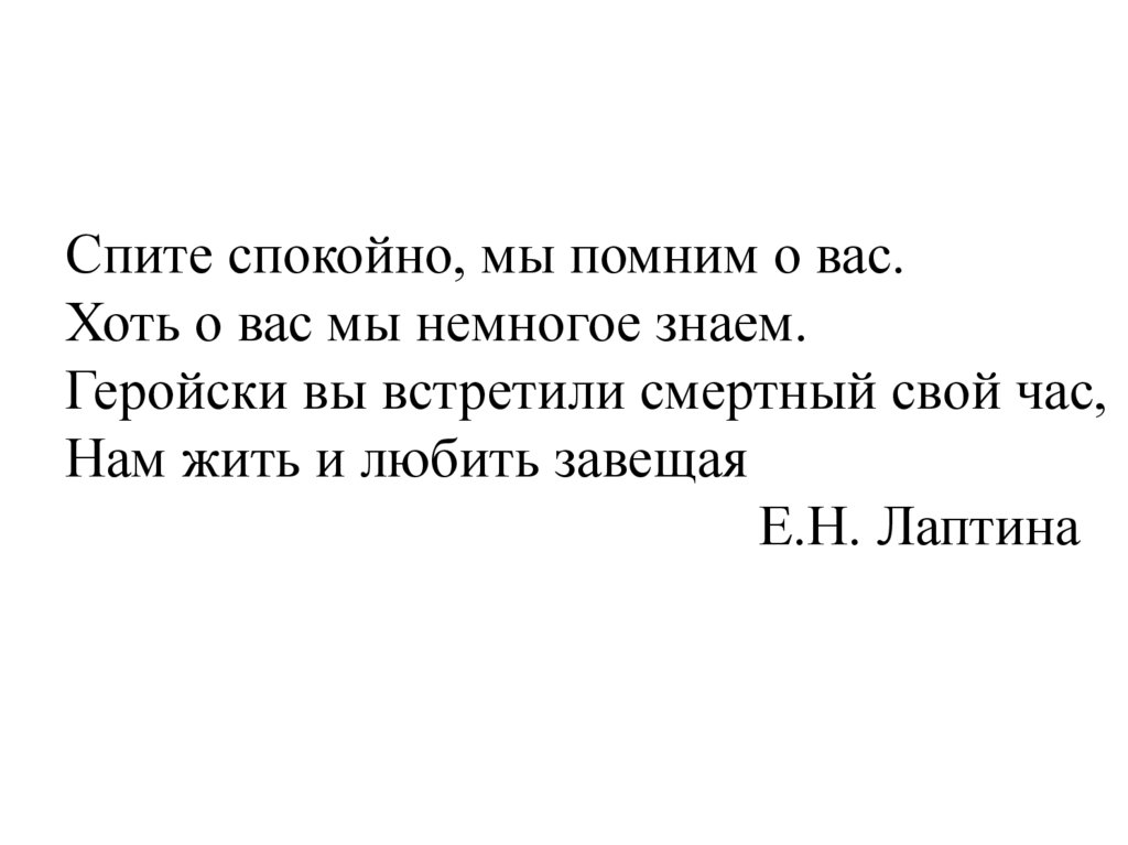 Спите спокойно, мы помним о вас.Хоть о вас мы немногое знаем.