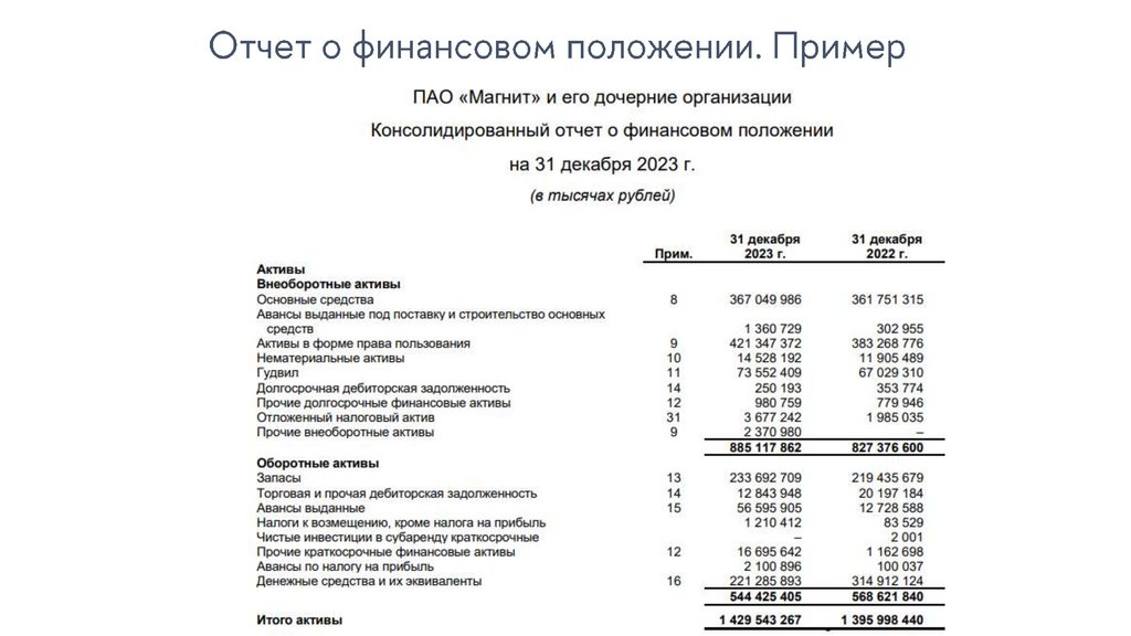 7.Что показывает отчет о финансовом положении (баланс)?