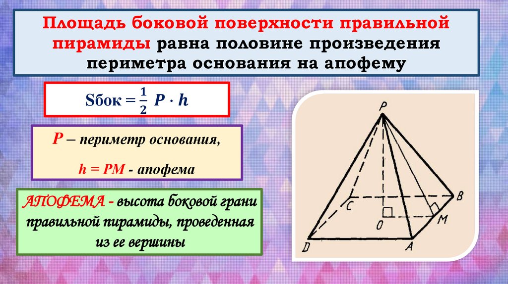 поверхности пирамиды сумма площадей её боковых