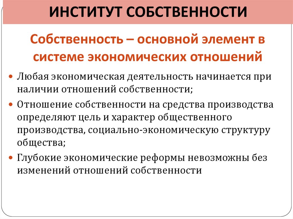 ИНСТИТУТ СОБСТВЕННОСТИСобственность – основной элемент в