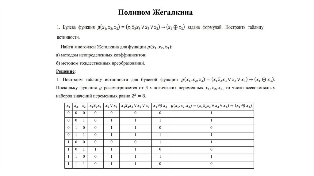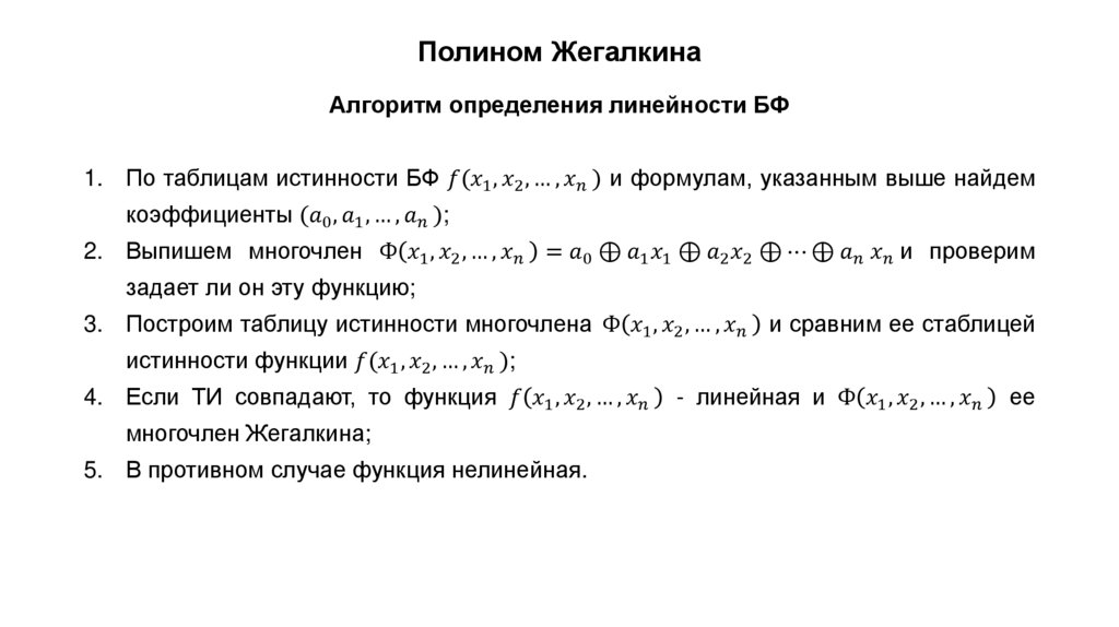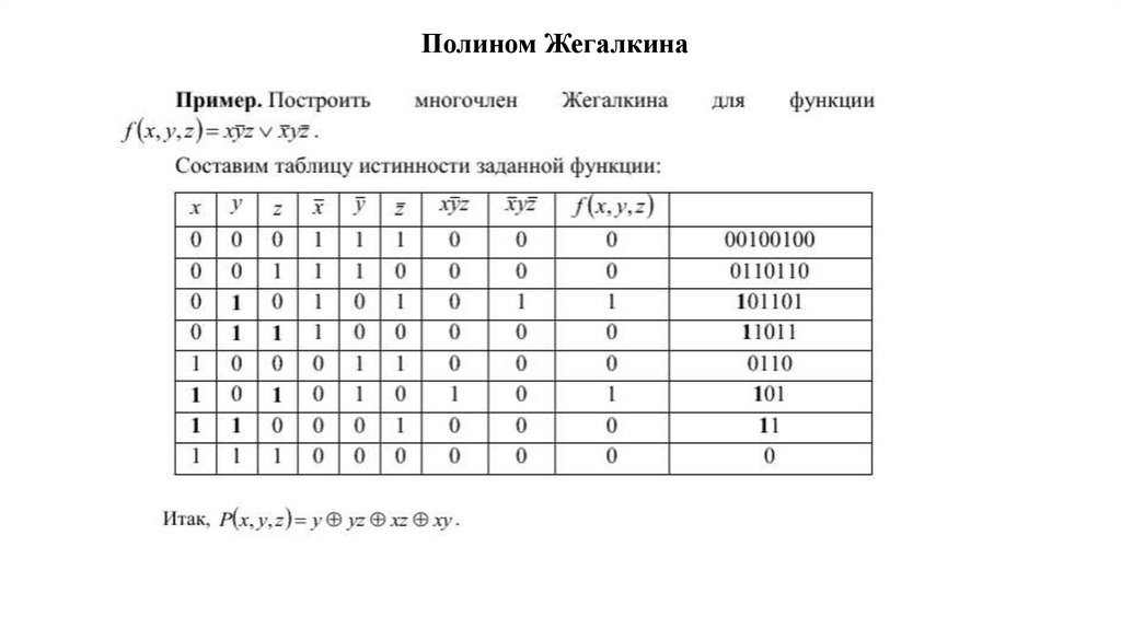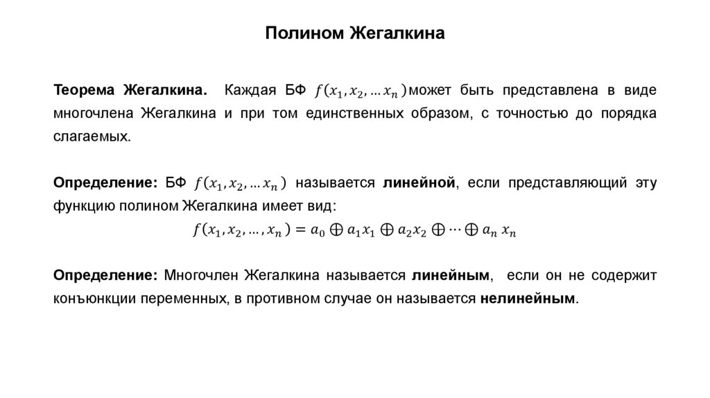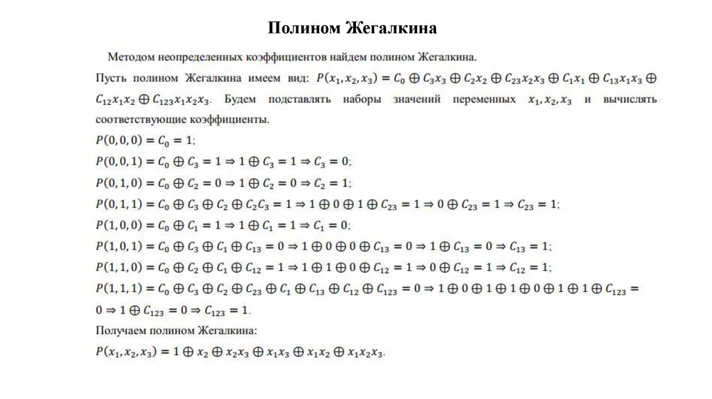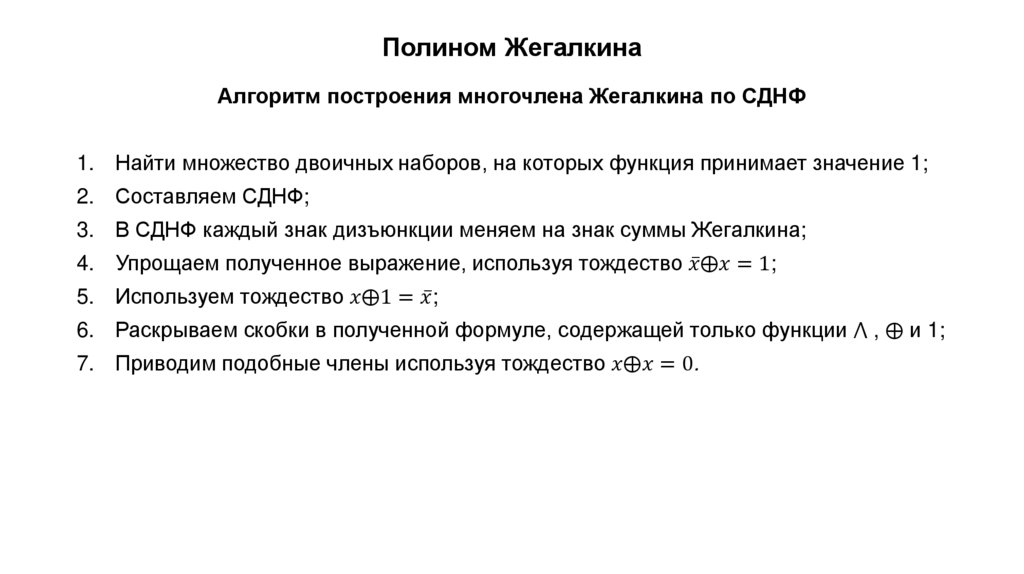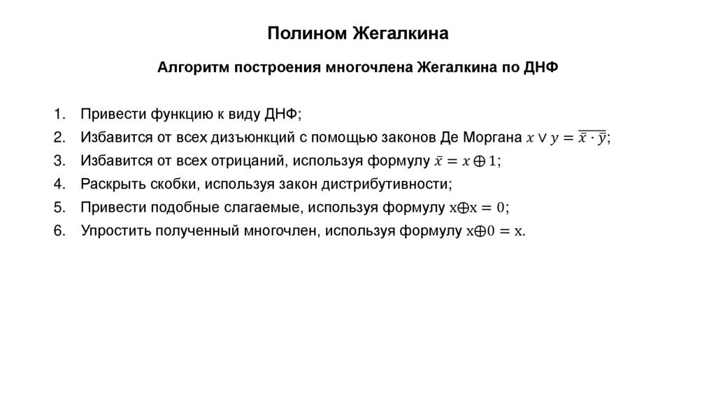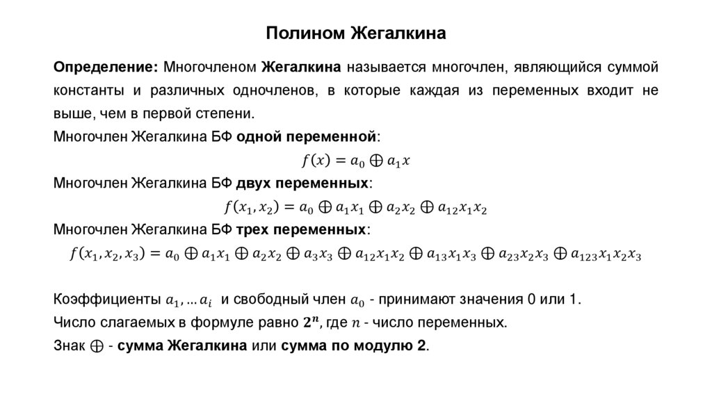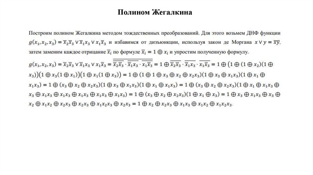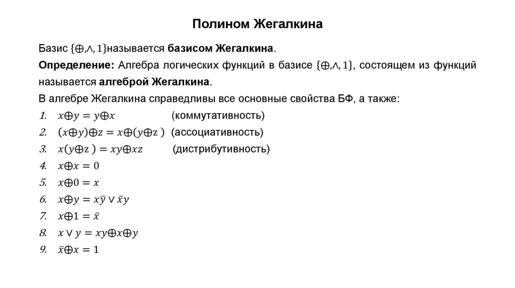 Базис ⨁,∧, 1 называется базисом Жегалкина.