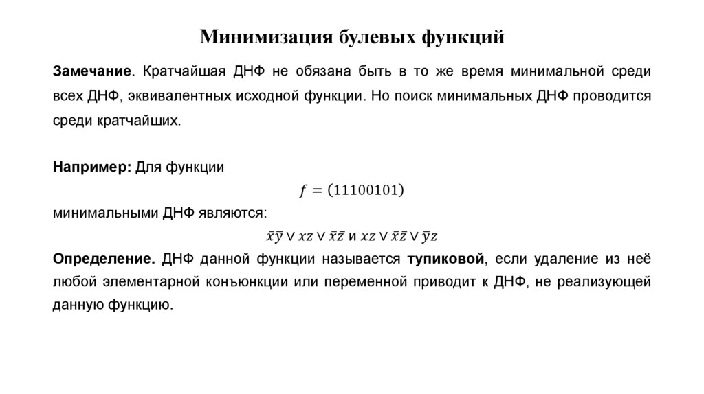 Определение: Минимальной ДНФ называется ДНФ, которая реализует функцию