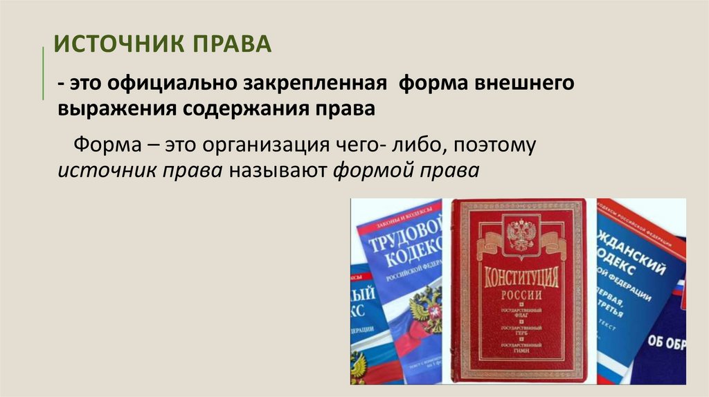 ИСТОЧНИК ПРАВА- это официально закрепленная форма внешнего