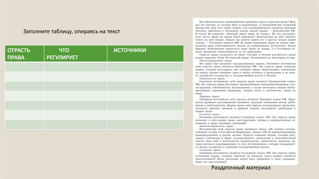 Заполните таблицу, опираясь на текстОТРАСТЬ