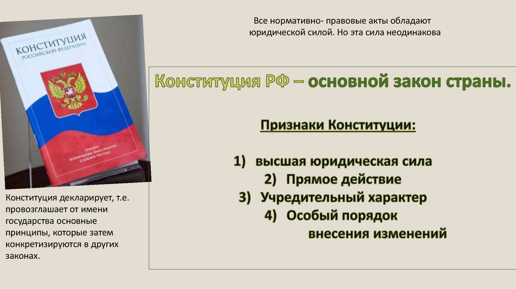 Все нормативно- правовые акты обладаютюридической силой. Но эта сила неодинакова