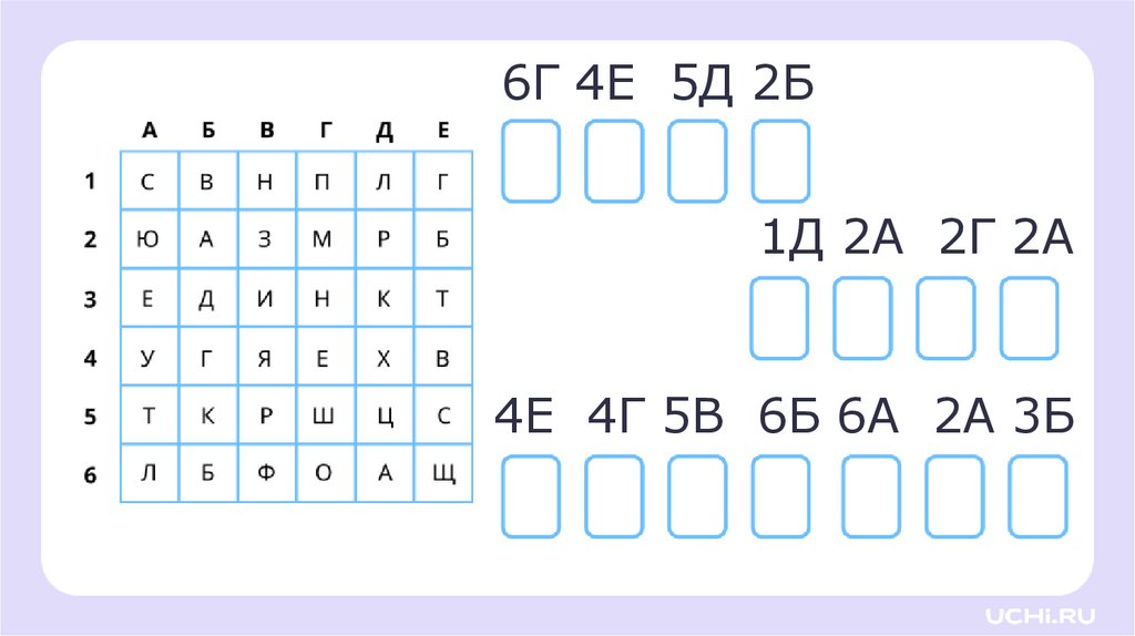 6Г 4Е 5Д 2Б1Д 2А 2Г 2А