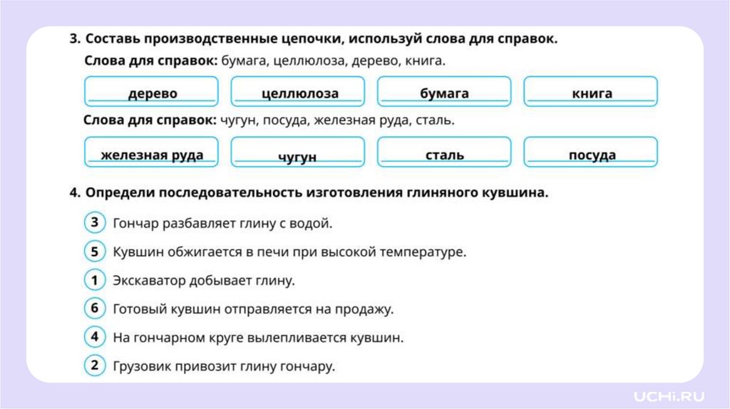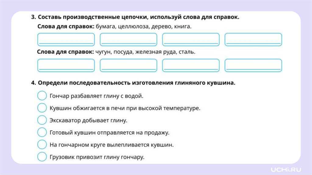 Составь правильную производственную цепочкуизготовления вазы