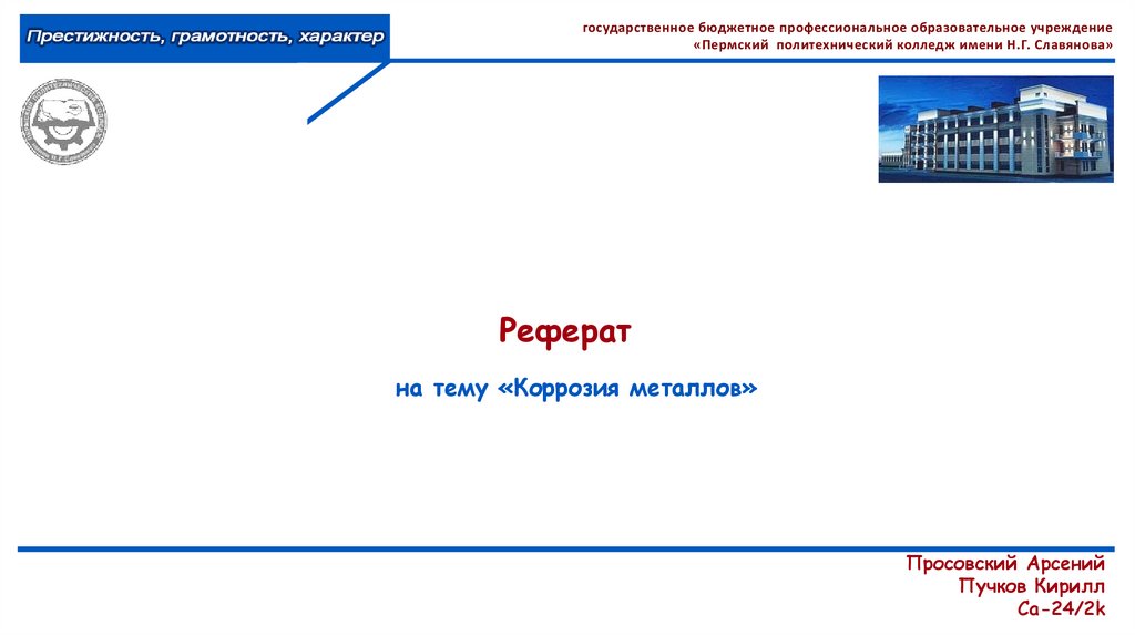 государственное бюджетное профессиональное образовательное учреждение«Пермский политехнический колледж имени Н.Г. Славянова»