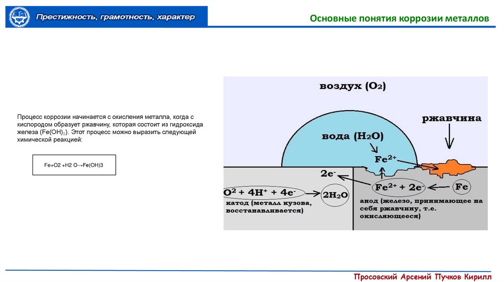 Основные понятия коррозии металловПроцесс коррозии начинается с окисления металла, когда с