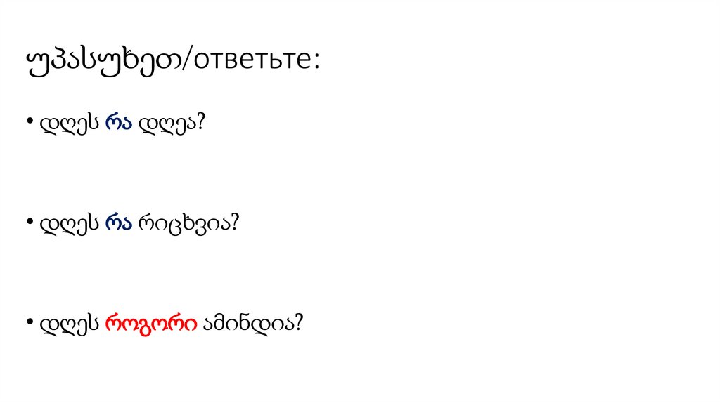 უპასუხეთ/ответьте:• დღეს რა დღეა?