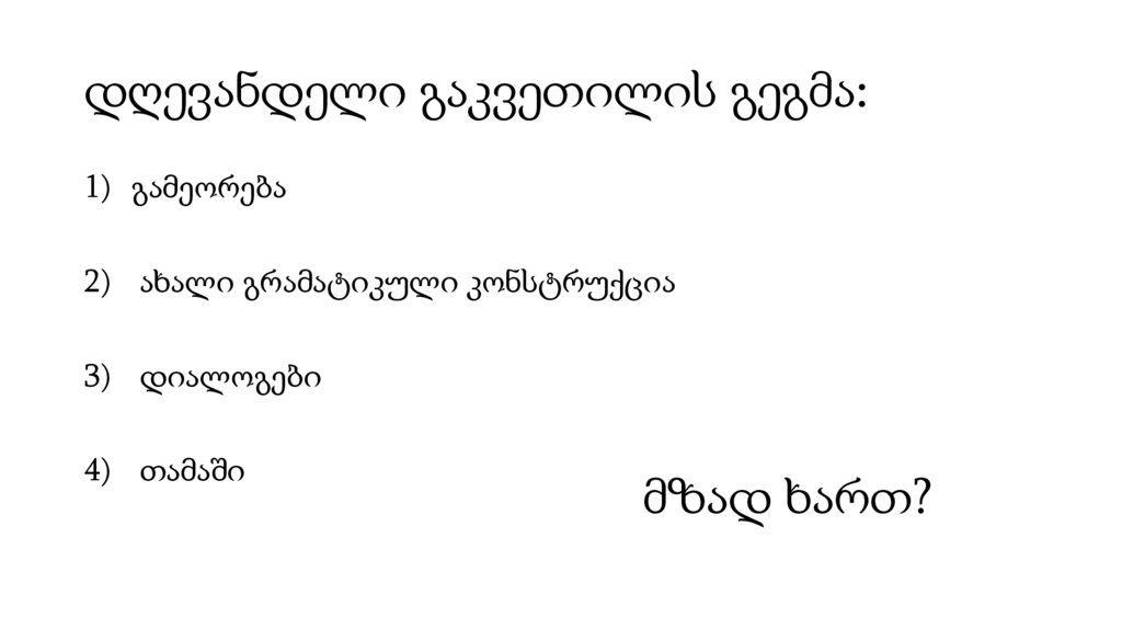 დღევანდელი გაკვეთილის გეგმა:1) გამეორება