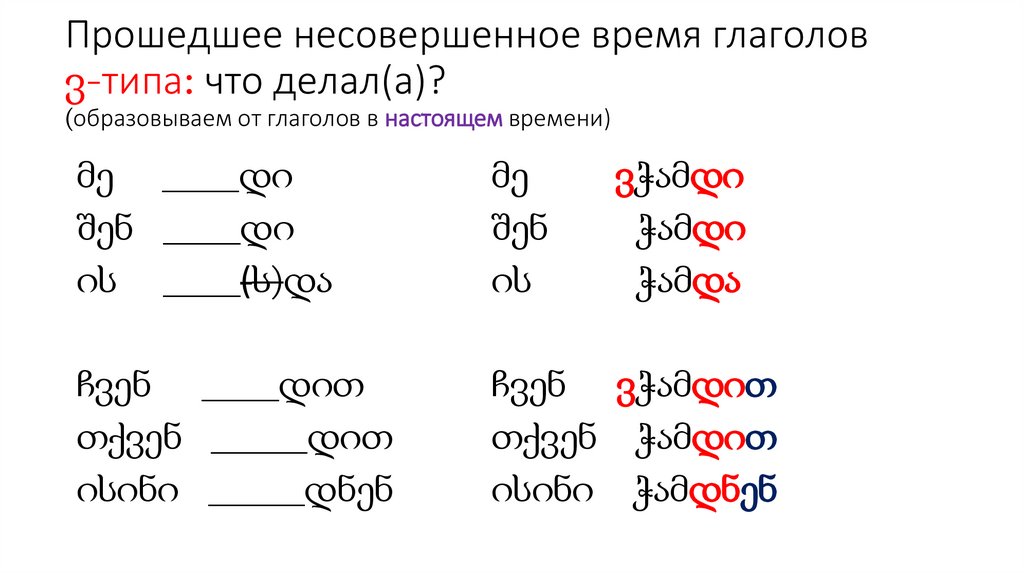 Прошедшее несовершенное время глаголовვ-типа: что делал(а)?