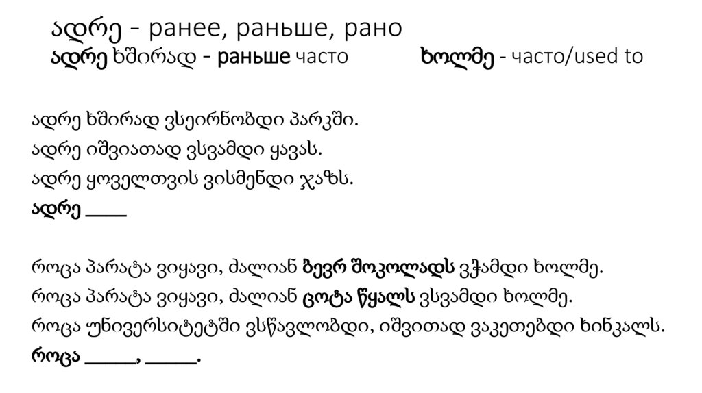 ადრე - ранее, раньше, раноადრე ხშირად - раньше часто