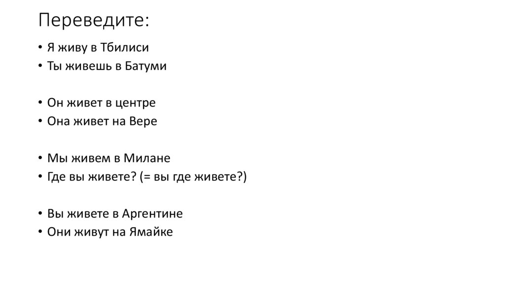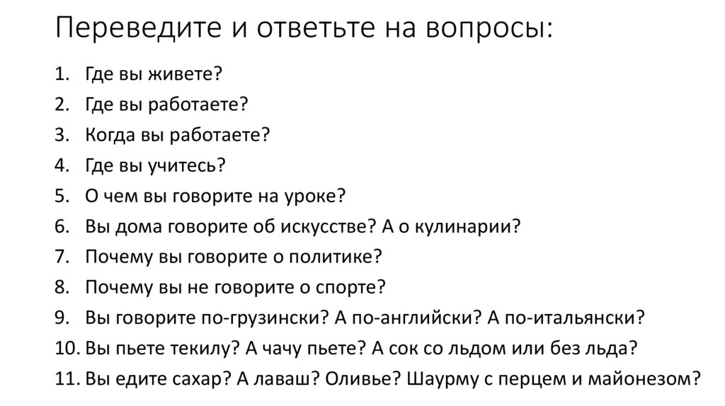 Переведите и ответьте на вопросы:1. Где вы живете?