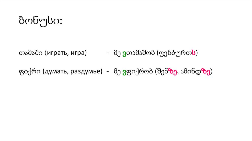 ფიქრი (думать, раздумье) - მე ვფიქრობ (შენზე, ამინდზე)