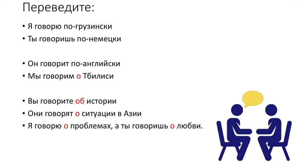 9. Вы говорите по-грузински? А по-английски? А по-итальянски?