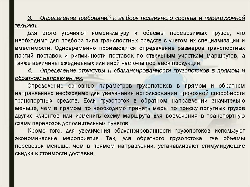 Для этого уточняют номенклатуру и объемы перевозимых грузов, что