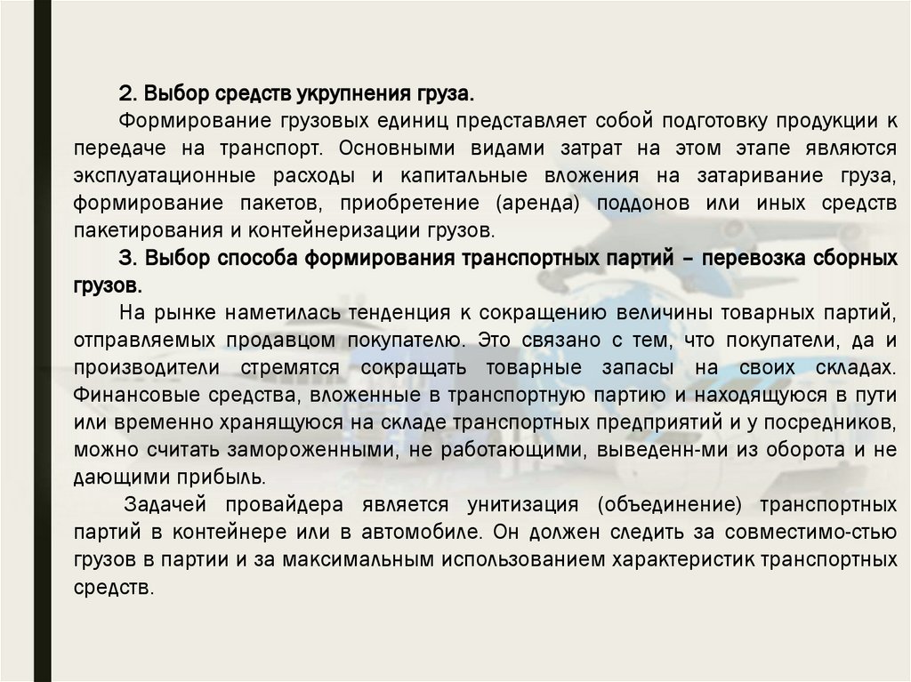 Цель транспортной логистики заключается не только в снижении за-трат, но и в