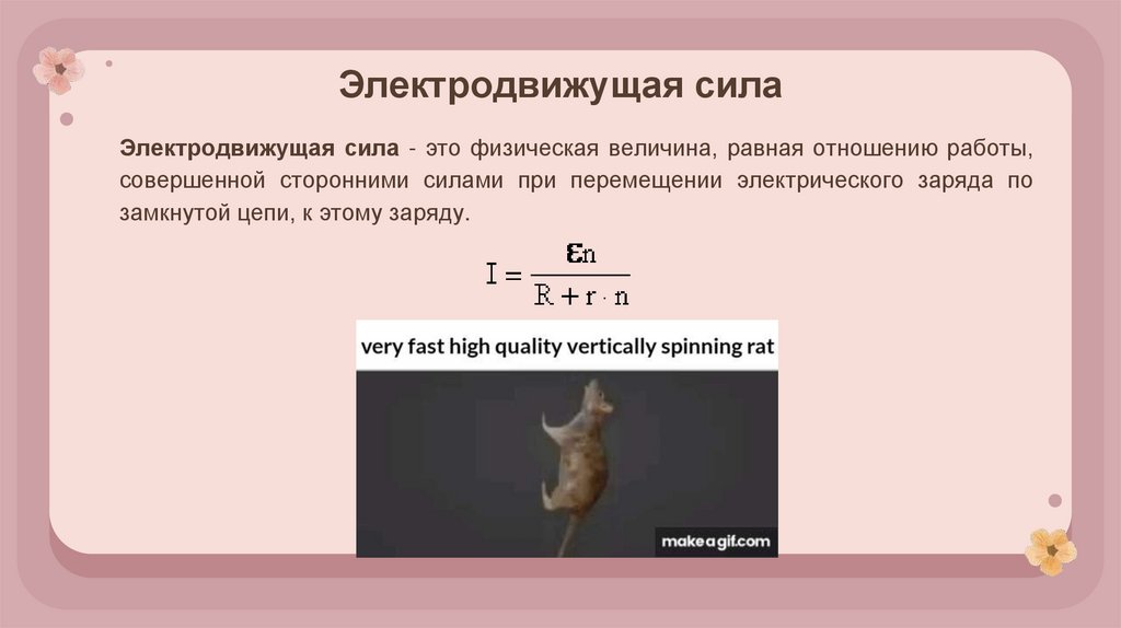 Электродвижущая силаЭлектродвижущая сила - это физическая величина, равная отношению работы,
