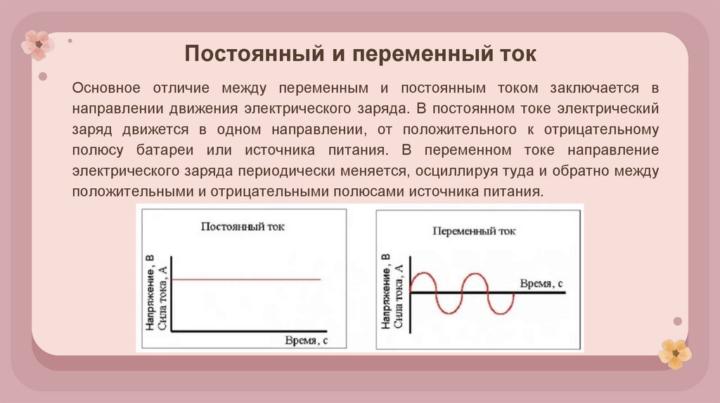 Постоянный и переменный токОсновное отличие между переменным и постоянным током заключается в