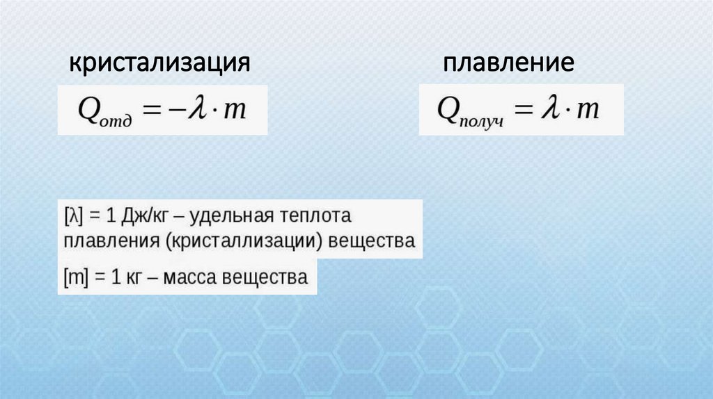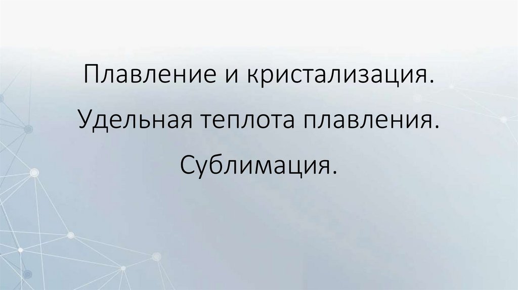 Плавление и кристализация. Удельная теплота плавления. Сублимация