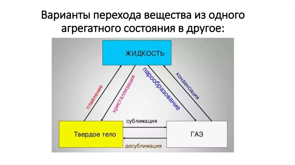 Варианты перехода вещества из одногоагрегатного состояния в другое:
