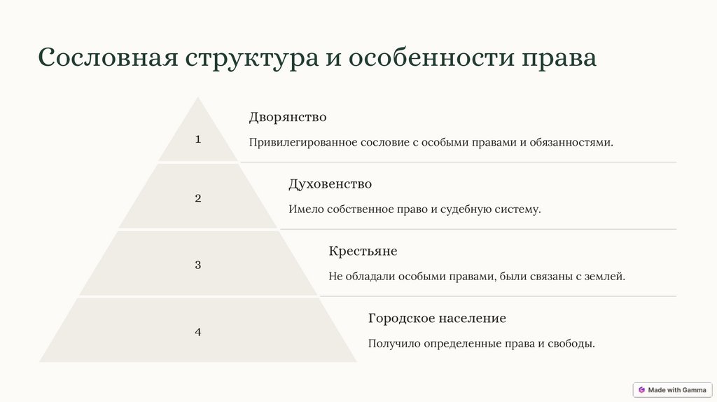 Сословная структура и особенности праваДворянство