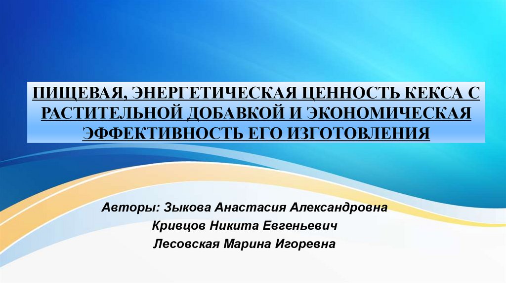 ПИЩЕВАЯ, ЭНЕРГЕТИЧЕСКАЯ ЦЕННОСТЬ КЕКСА СРАСТИТЕЛЬНОЙ ДОБАВКОЙ И ЭКОНОМИЧЕСКАЯ