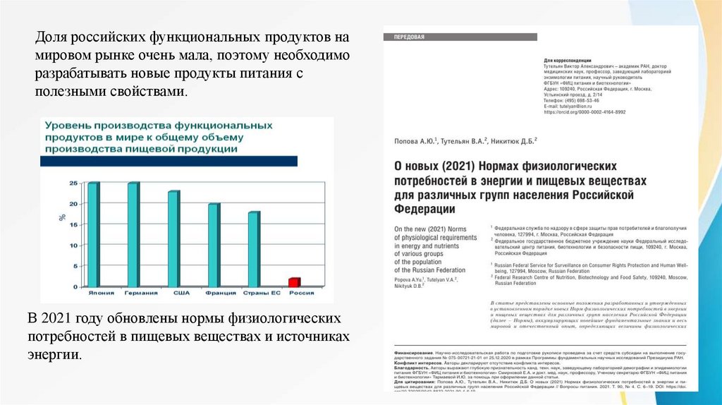 Доля российских функциональных продуктов намировом рынке очень мала, поэтому необходимо