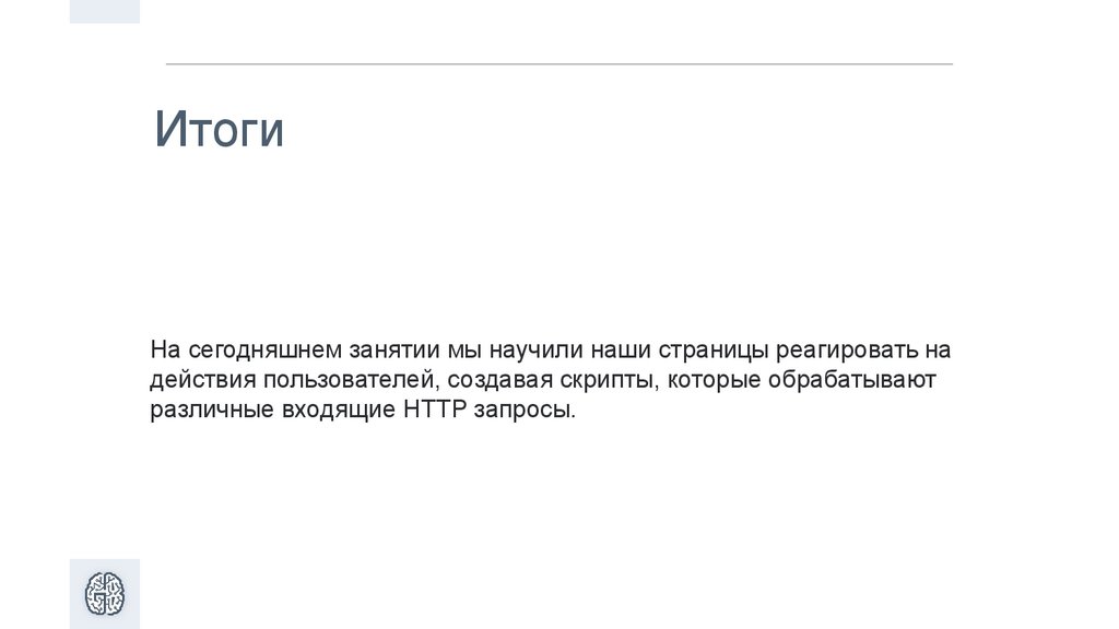 ИтогиНа сегодняшнем занятии мы научили наши страницы реагировать на