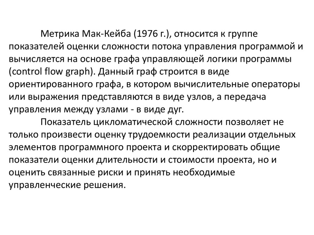 Метрика Мак-Кейба (1976 г.), относится к группепоказателей оценки сложности потока управления программой и