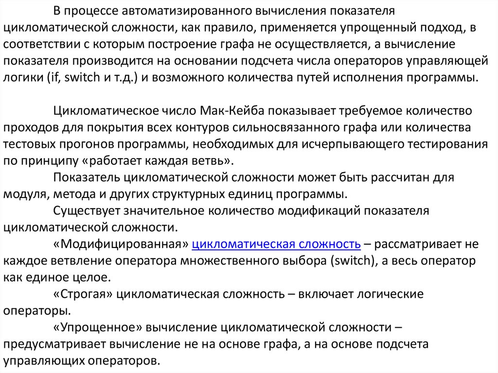 В процессе автоматизированного вычисления показателяцикломатической сложности, как правило, применяется упрощенный подход, в