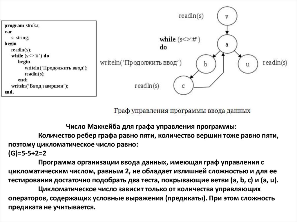 Число Маккейба для графа управления программы:Количество ребер графа равно пяти, количество вершин тоже равно пяти,