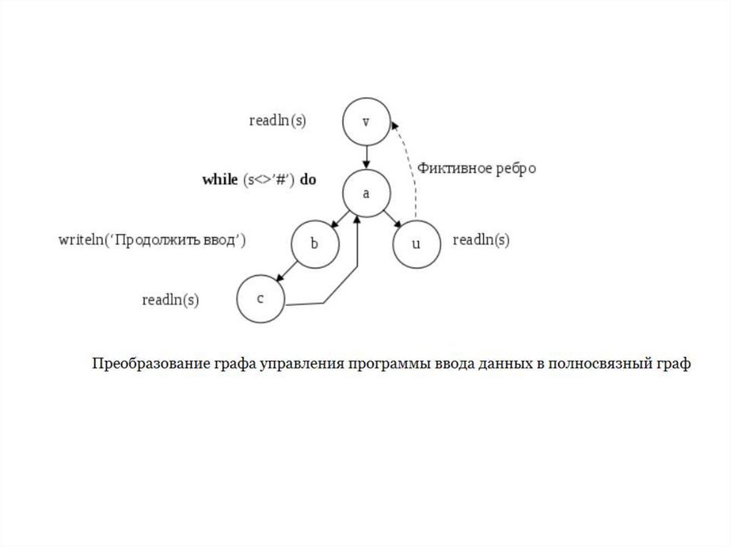тестирования достаточно подобрать два теста, покрывающие ветви (а, b, с) и (а, u).