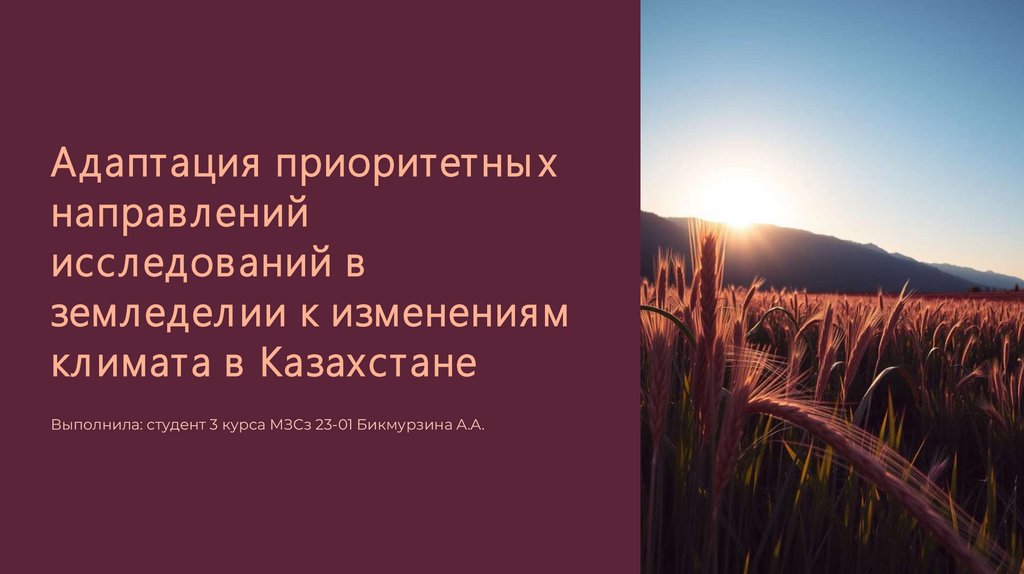 Адаптация приоритетны х направлений исследований в земледелии к изменениям климата в Казахстане