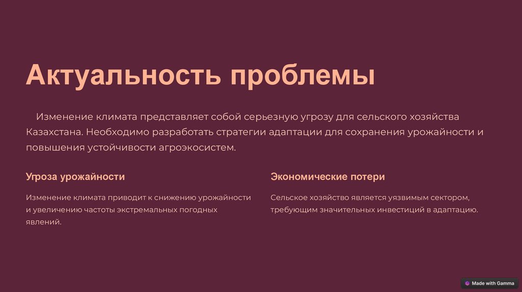 Актуальность проблемыИзменение климата представляет собой серьезную угрозу для сельского хозяйства