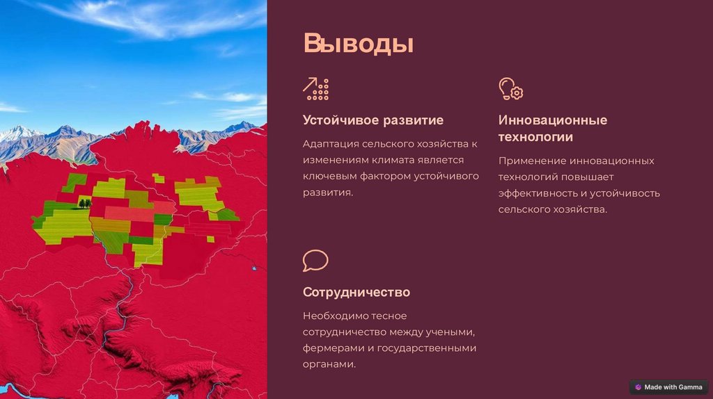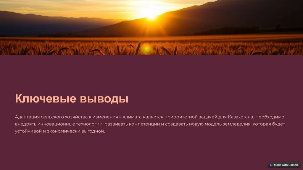 Ключевые выводыАдаптация сельского хозяйства к изменениям климата является приоритетной задачей для Казахстана. Необходимо