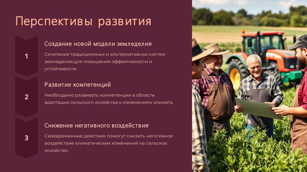 Перспектив ы разв итияСоздание новой модел и земледел ия