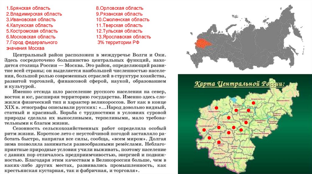 больше среднероссийской. Густо заселены Московская, Ивановская и Тульская области, а в Тверской, Костромской и
