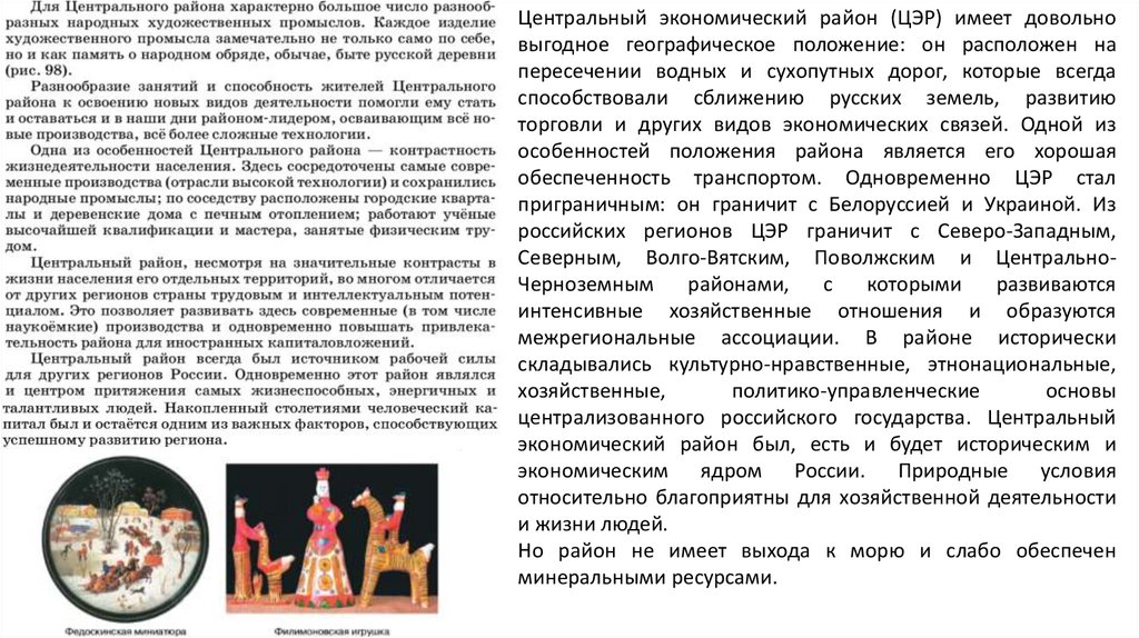 Центральный экономический район (ЦЭР) имеет довольновыгодное географическое положение: он расположен на