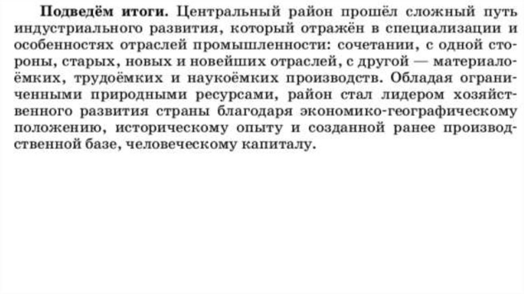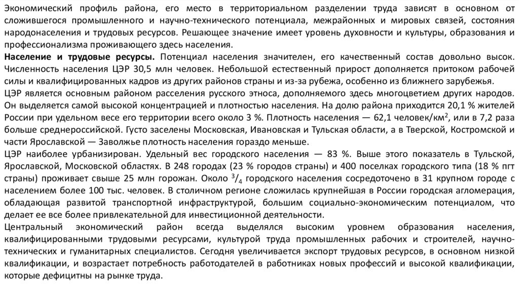 сложившегося промышленного и научно-технического потенциала, межрайонных и мировых связей, состояния народонаселения и трудовых ресурсов. Решающее значение