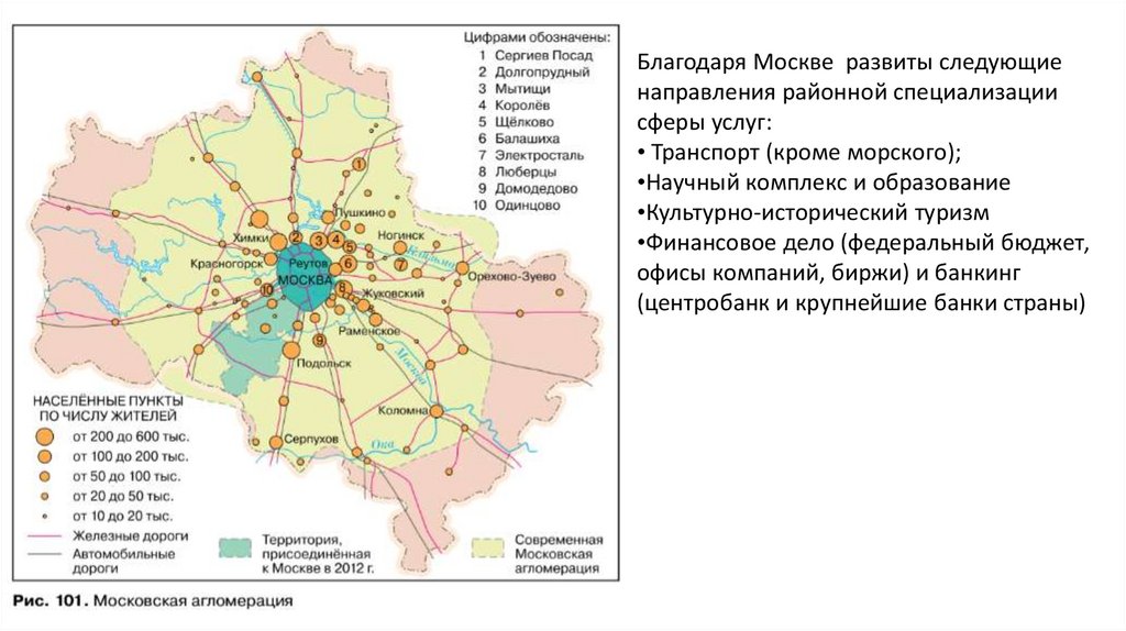 населением более 100 тыс. человек. В столичном регионе сложилась крупнейшая в России городская агломерация,