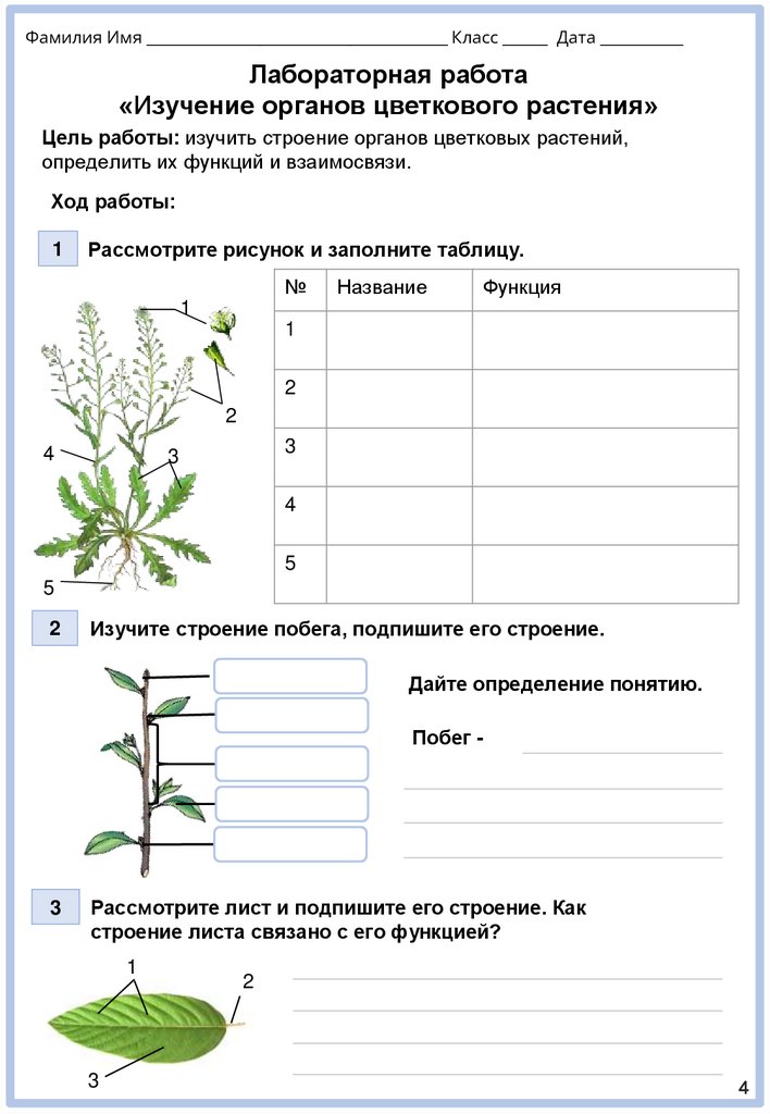 Фамилия Имя ________________________________________ Класс ______ Дата ___________Лабораторная работа
