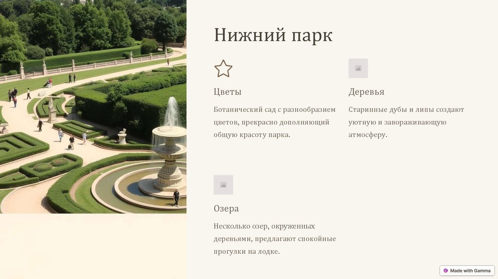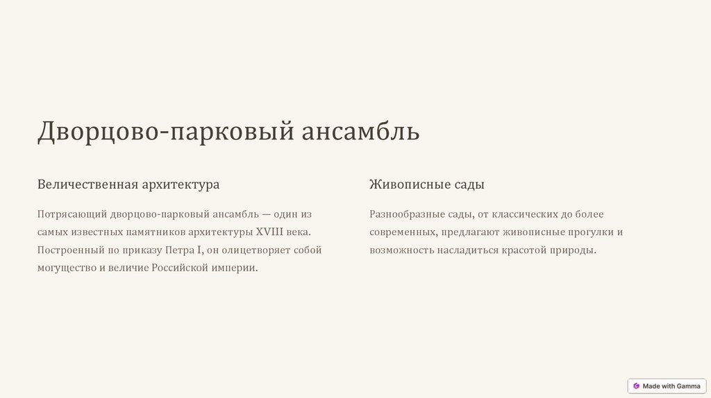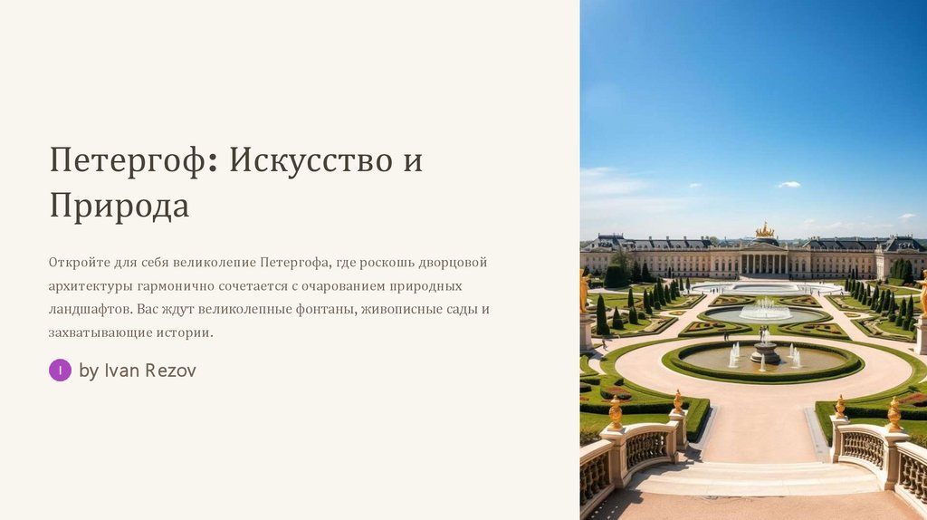 ландшафтов. Вас ждут великолепные фонтаны, живописные сады и