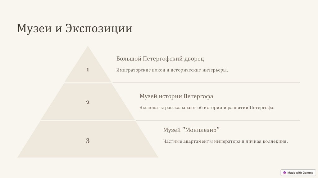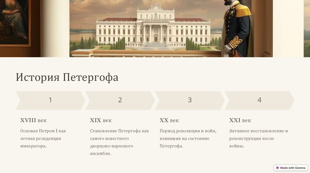 Экспонаты рассказывают об истории и развитии Петергофа.