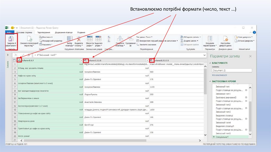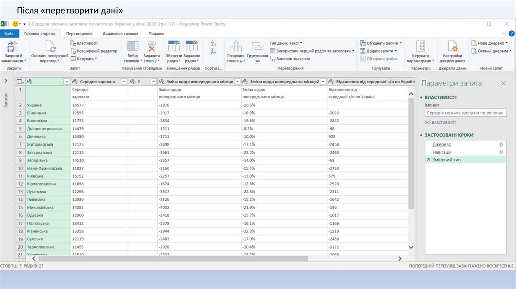 Після «перетворити дані»6.