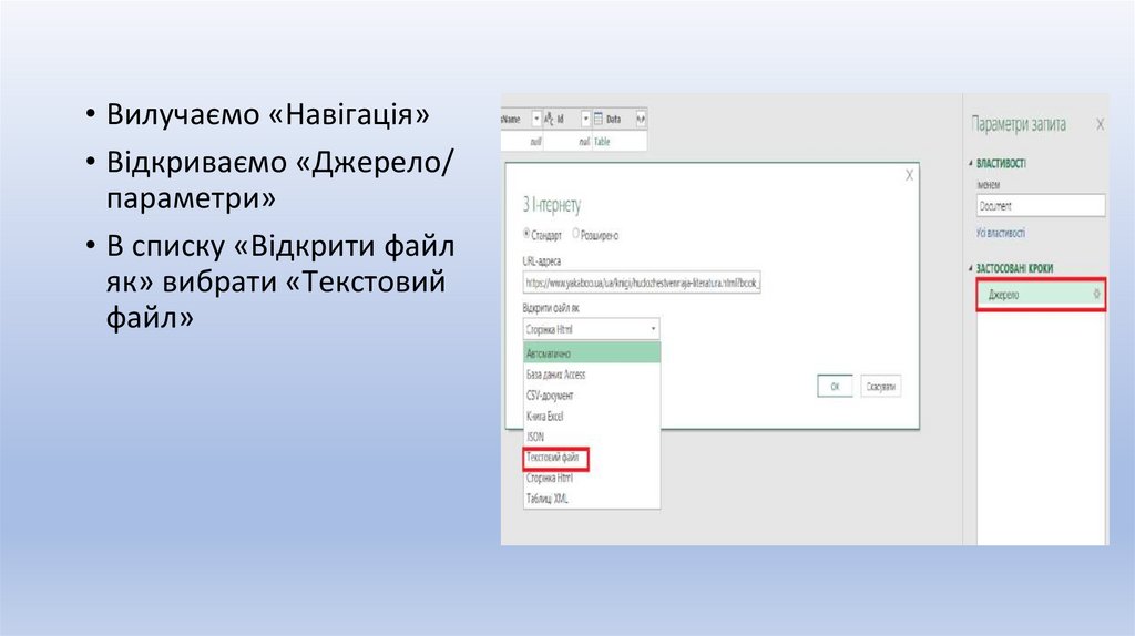 • Вилучаємо «Навігація»• Відкриваємо «Джерело/