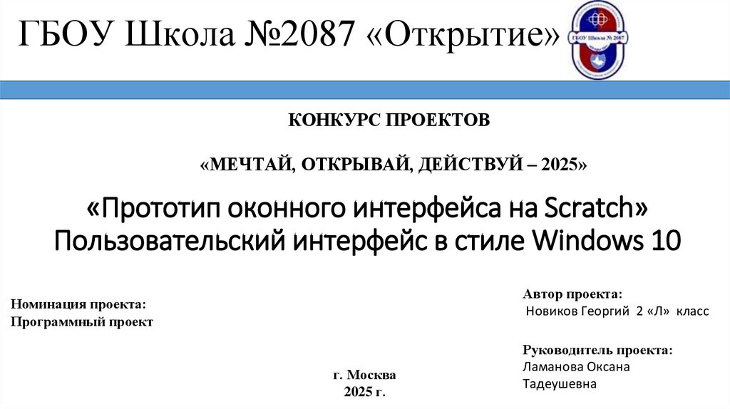 ГБОУ Школа №2087 «Открытие»КОНКУРС ПРОЕКТОВ