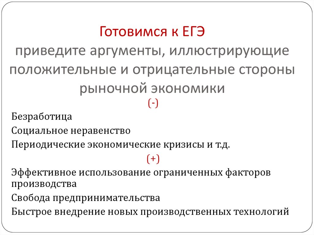 13. Готовимся к ЕГЭ приведите аргументы, иллюстрирующие положительные и отрицательные стороны рыночной экономики